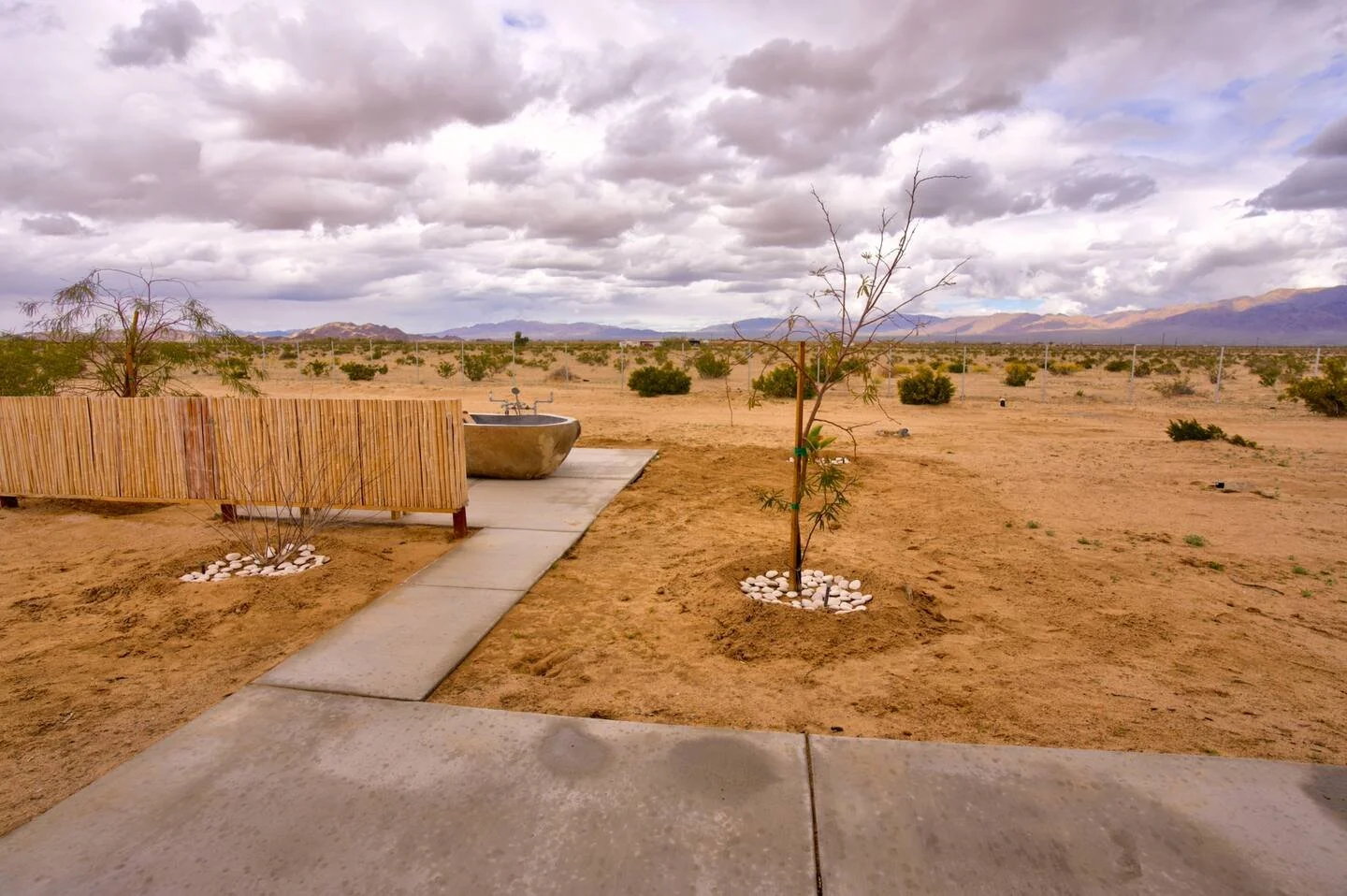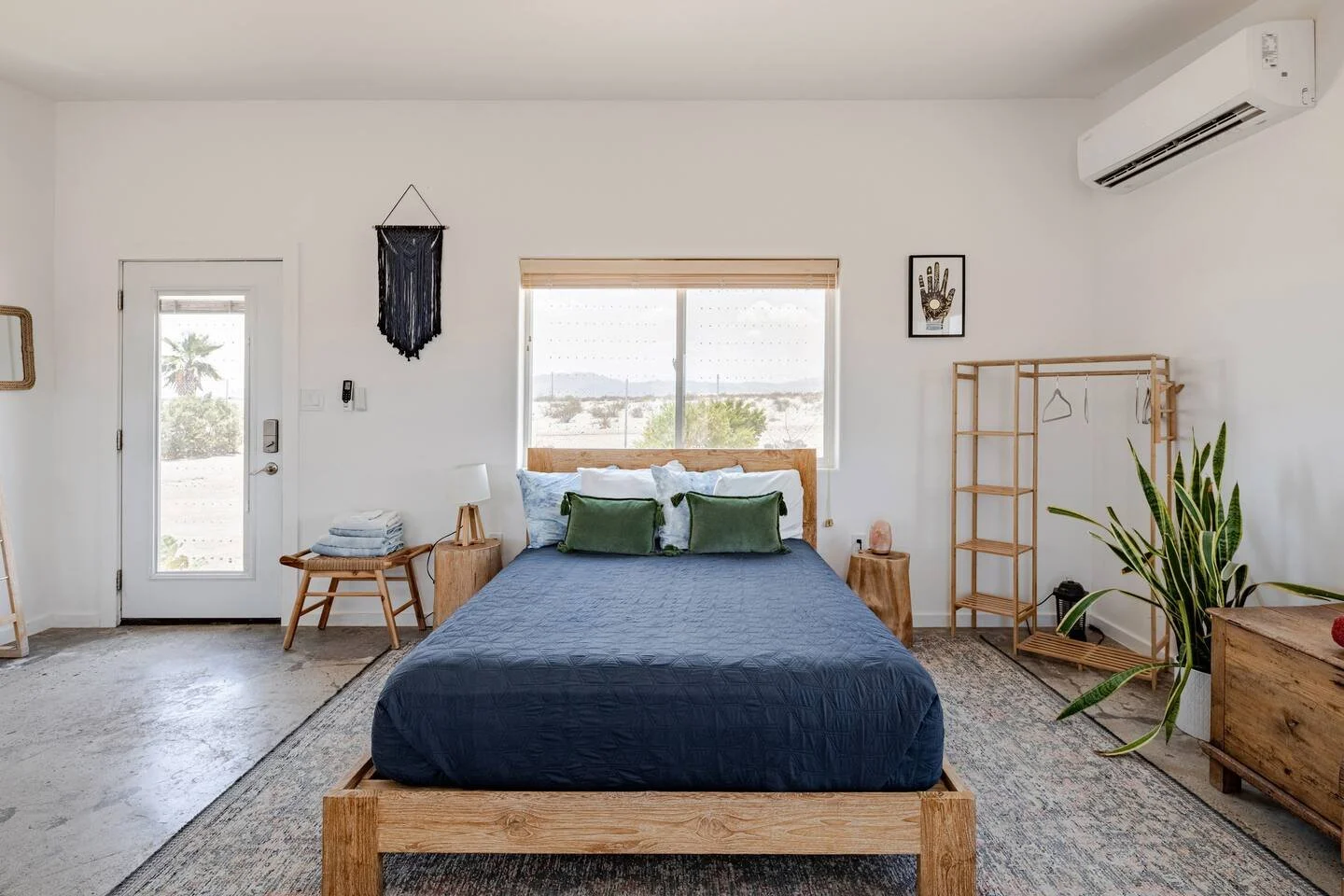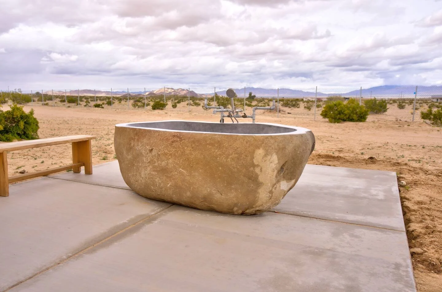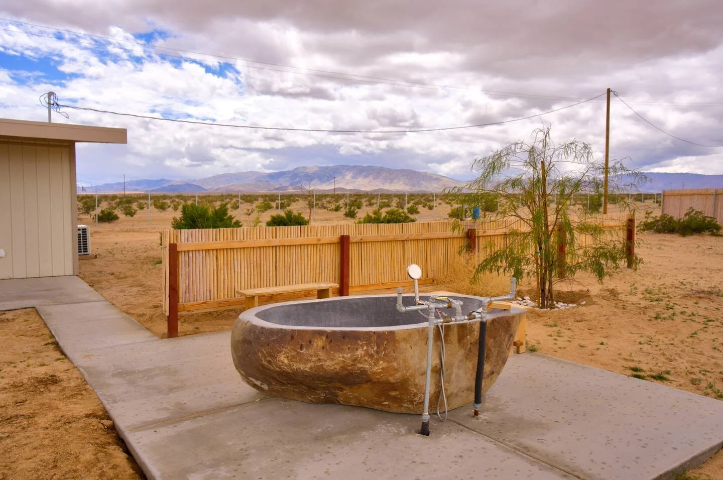 Our Sage cabin is a 550-square-foot studio that can accommodate up to three guests. Located in Wonder Valley, a short 15-mile drive to Joshua Tree National Park, enjoy a peaceful and restorative getaway immersed in nature, soaking under the stars in your own outdoor granite hot springs tub fed with mineral-rich hot springs water.