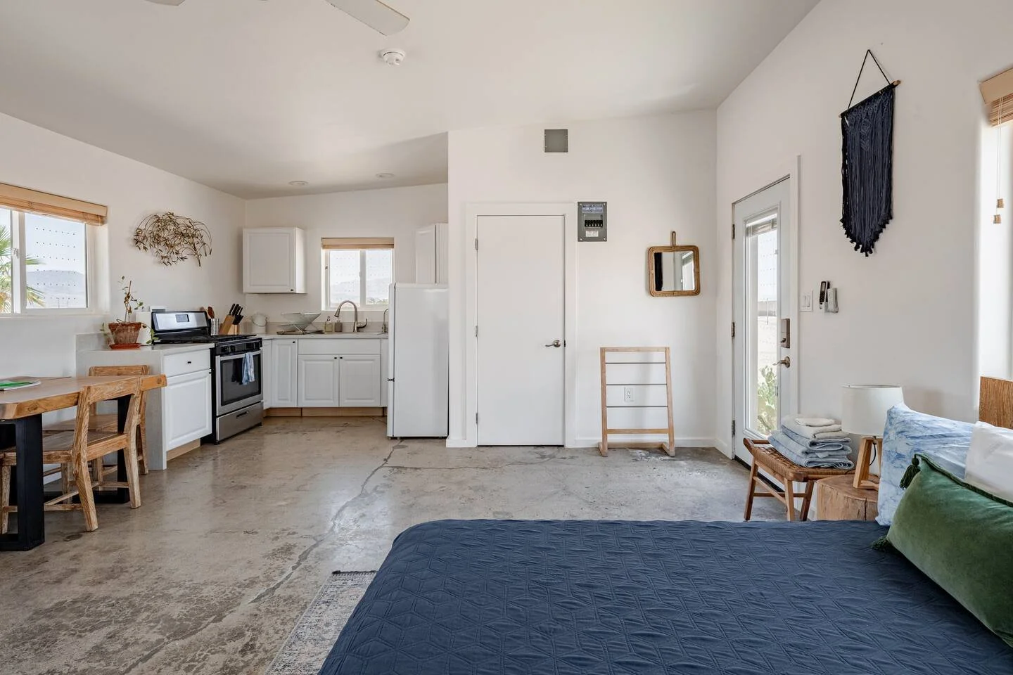 Driving is required to access local restaurants, stores, or Joshua Tree National Park, but car services like Uber are available should you elect not to have a car during your stay.